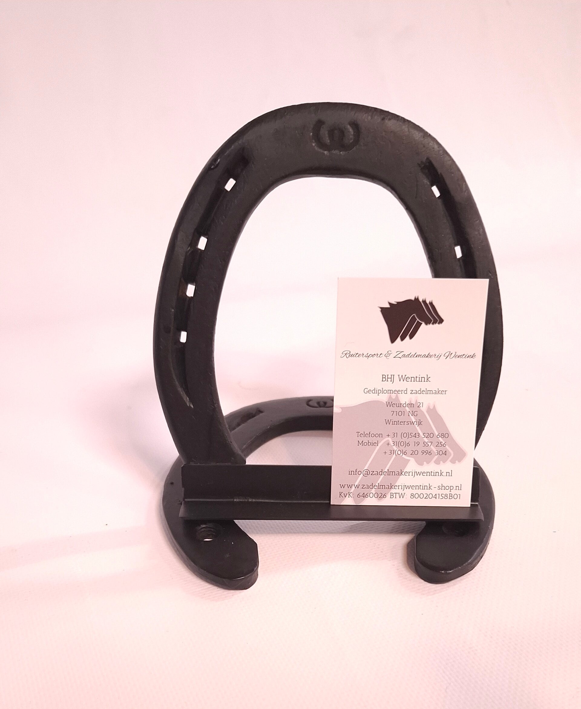 Deze mooie houder is gemaakt van gebruikte hoefijzers.